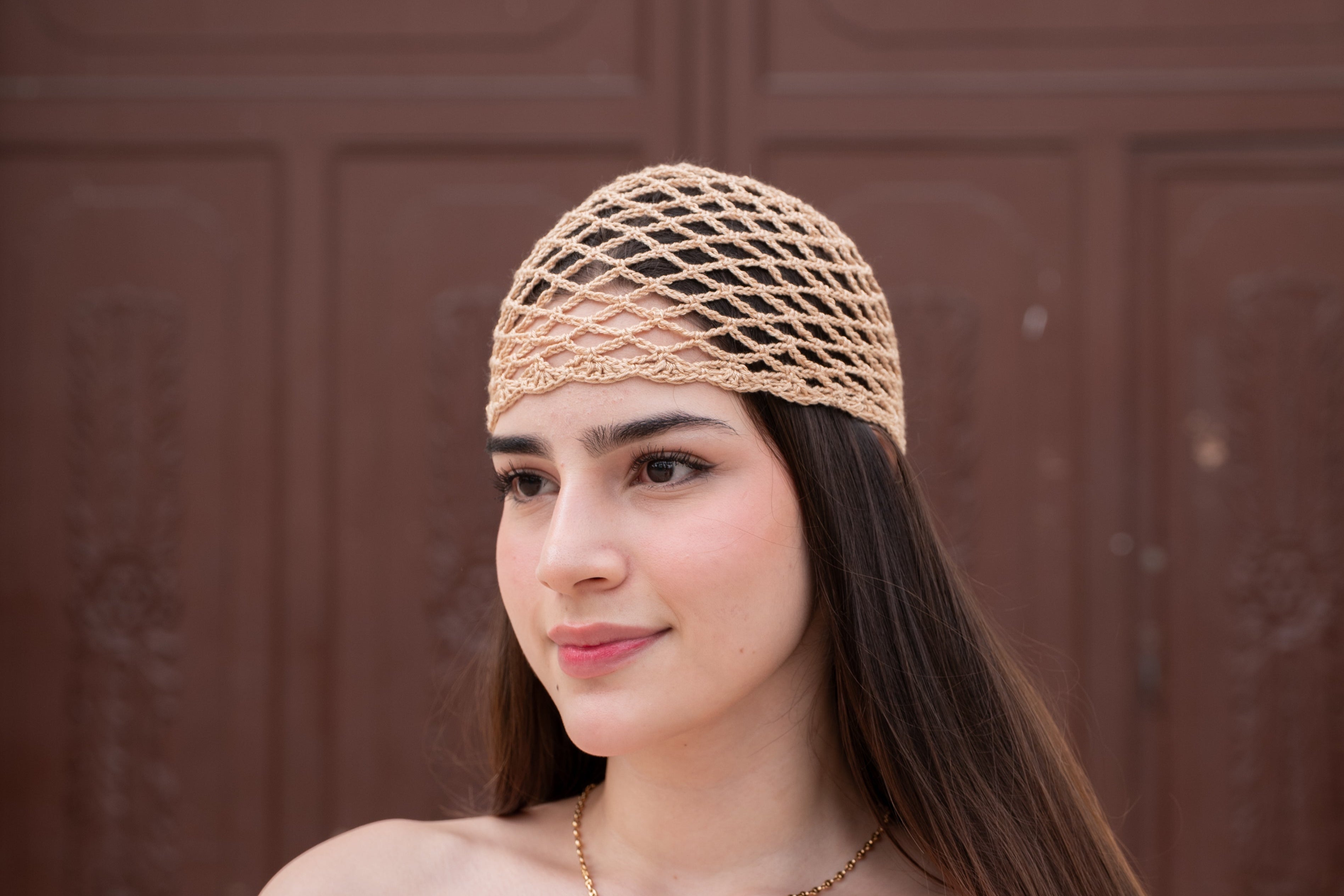 Crochet Mesh Hat Beige