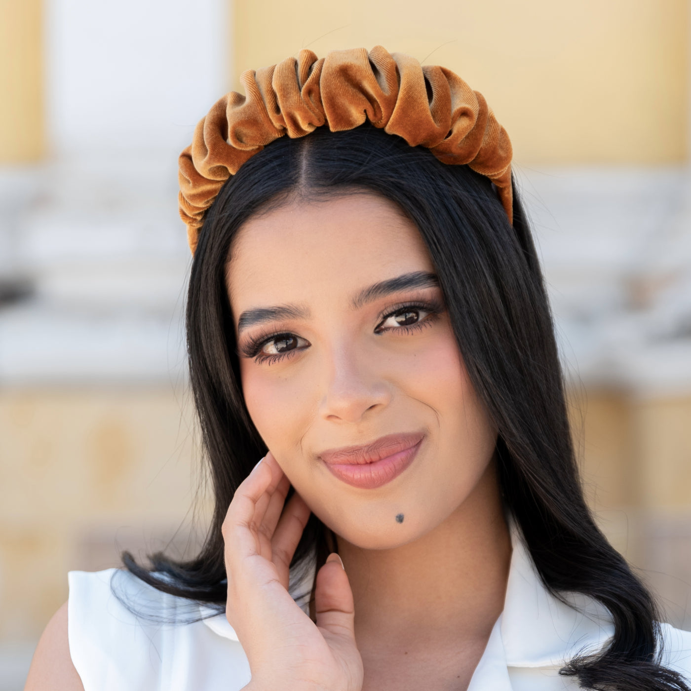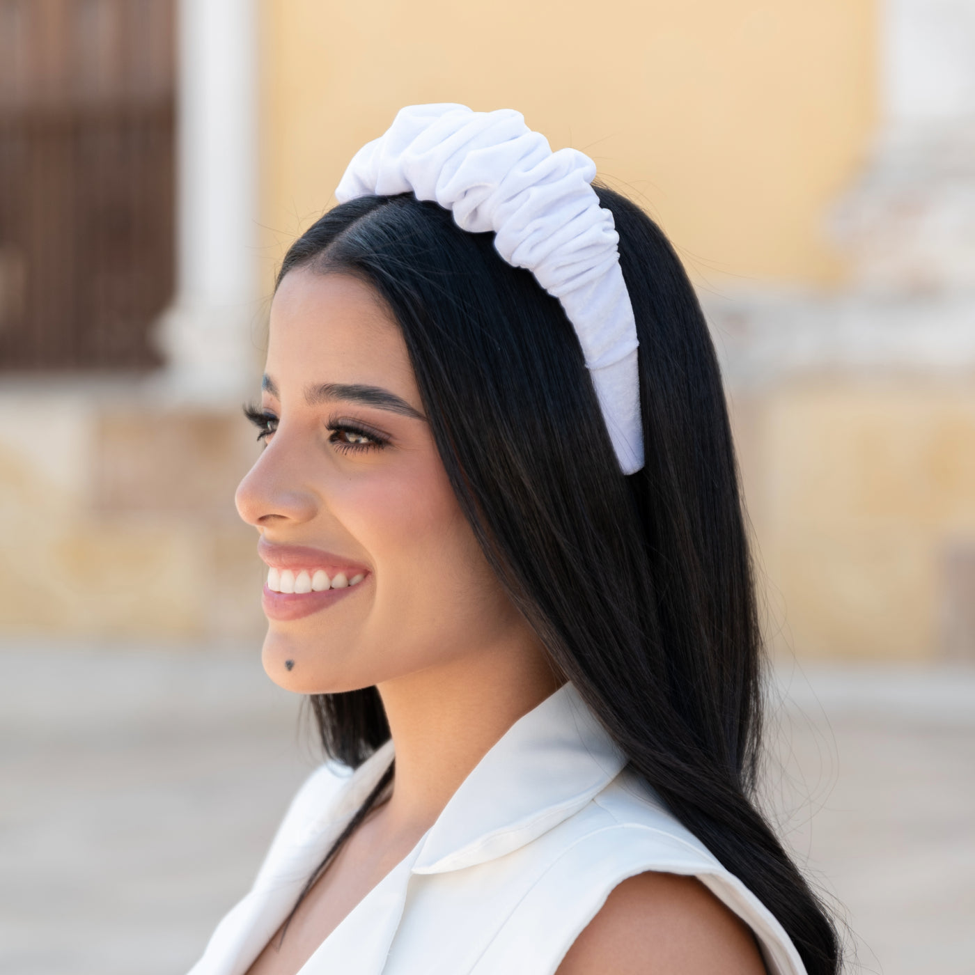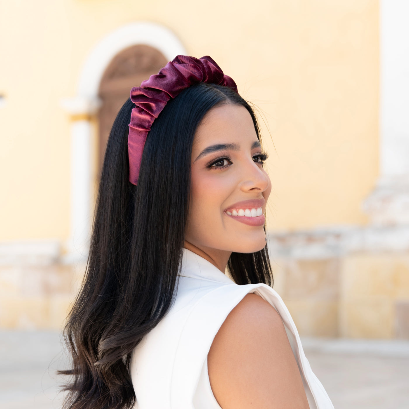 Ajusta la Diadema Rizada a tu cabeza para crear un estilo único, perfecto para cualquier tipo de cabello y para añadir un toque especial a coletas o moños.
